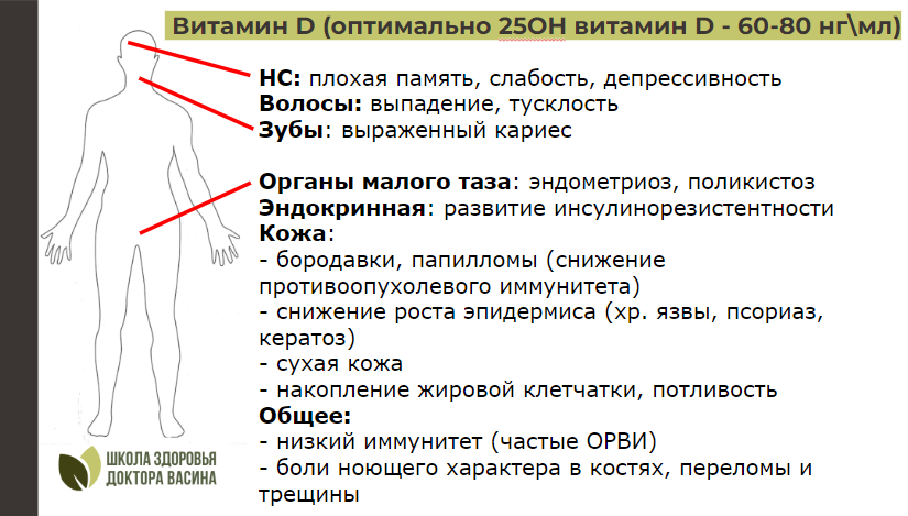 Витамин D. Оптимальные значения от 60 до 80 нг/мл